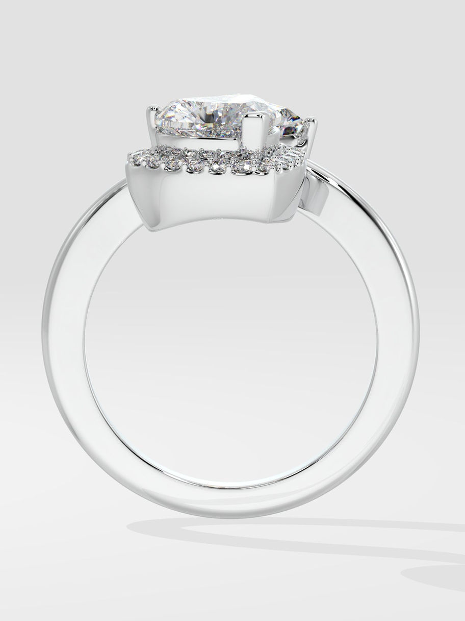 Introducing our exquisite 2-Diamond Ring, a masterpiece of unparalleled elegance and sophistication. At its core, a stunning 1 ct heart-shaped diamond takes center stage, embraced by a delicate halo, while alongside it gleams a classic 1 ct emerald cut diamond. Both diamonds are meticulously set at an angle on the flowing shank, with the heart diamond rightfully stealing the spotlight. Crafted with precision and finesse, this ring exemplifies the epitome of luxury craftsmanship and timeless beauty. Elevate your ensemble with the undeniable allure of our 2-Diamond Ring, designed for those who seek only the finest in luxury jewelry.